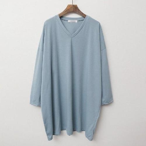 [엄지척]여자 낫띵브이넥롱티 NOC513M305 여성 큰옷 반팔티 루_19627317_667501