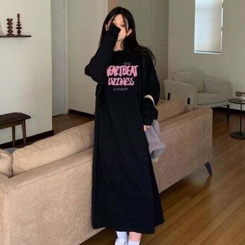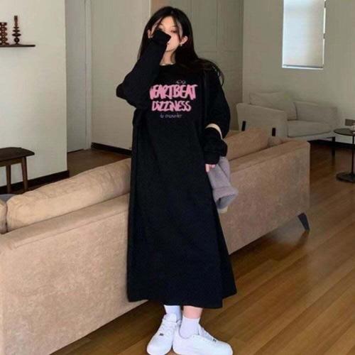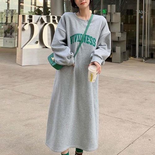 [셀럽하우스]기모 DGWV1268 인기 여성 레터링 맨투맨 감성 롱 티 원피스