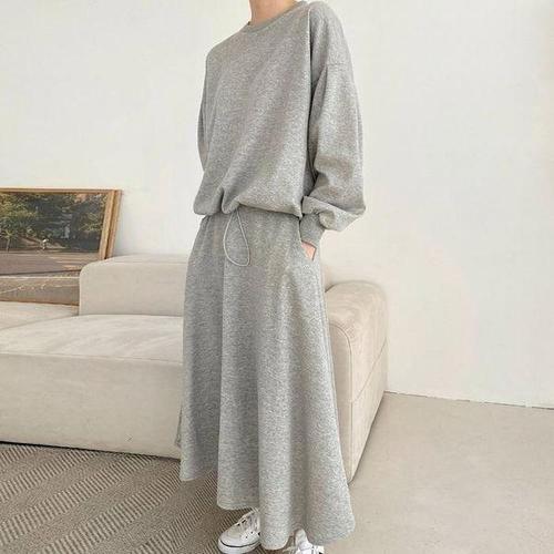 [셀럽하우스]여성 DFJC0875 데일리 롱 원피스 허리 밴딩 플레어 치마 맨투맨