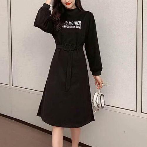 [에이치플러스몰]여성 벨트 세트 긴팔 가을 겨울 맨투맨 롱 원피스 2색