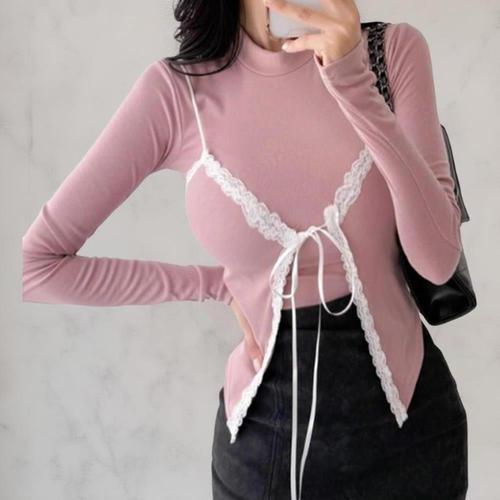 [다잇템]여성 롱슬리브티 코르셋 귀여운 리본 세트