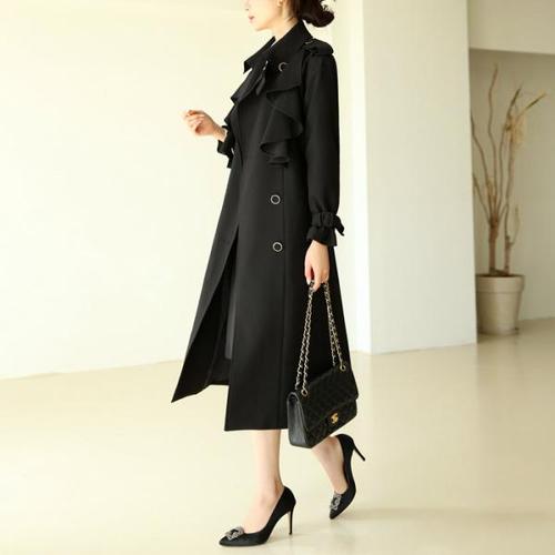 [스타일온미][스타일온미] 오하르 벨트세트 골드버튼 프릴 롱 트렌치코트