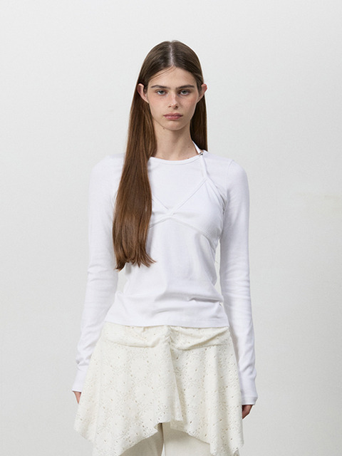 [쓰리투에이티] 비즈 브라 레이어드 롱 슬리브 티셔츠 화이트
