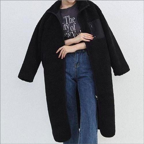 WL 여성 뽀글이 후리스 후드 블랙 롱 코트 겨울 아우터 WFLQPO5