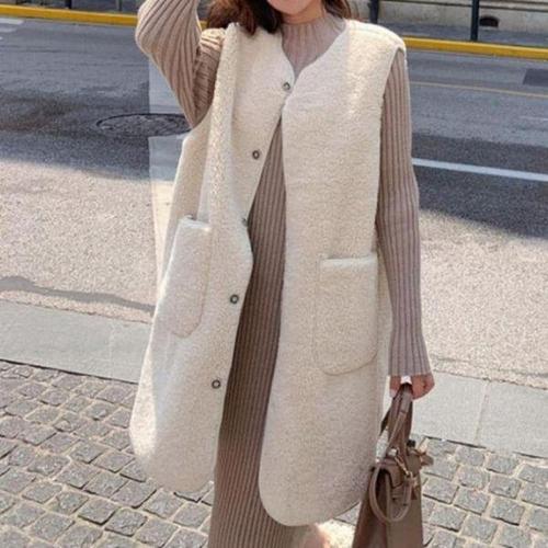 [셀러허브_여성트랜드패션]여성 브이넥 뽀글이조끼 양털후리스 보온 조끼 플리스 양털 누빔조끼 롱 베스..