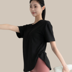 루나인 찰랑 슬림핏 반팔티 롱 힙커버 스판 필라테스 반팔티
