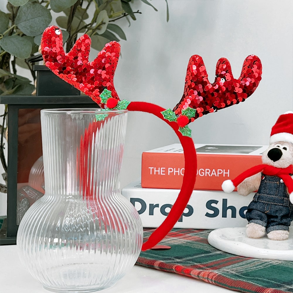 크리스마스 코스튬 연말 생일파티 루돌프 스팽글 사슴뿔 머리띠
