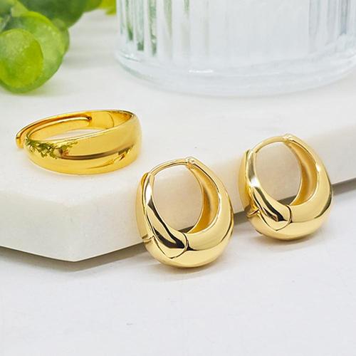 TEMU 빈티지 우아한 18K 금도금 쥬얼리 세트, 라인스톤 장식 아연 합금 물방울 귀걸이, 목걸이 및 반지 콤보 여성용 - 일상 및 특별한 날에 이상적