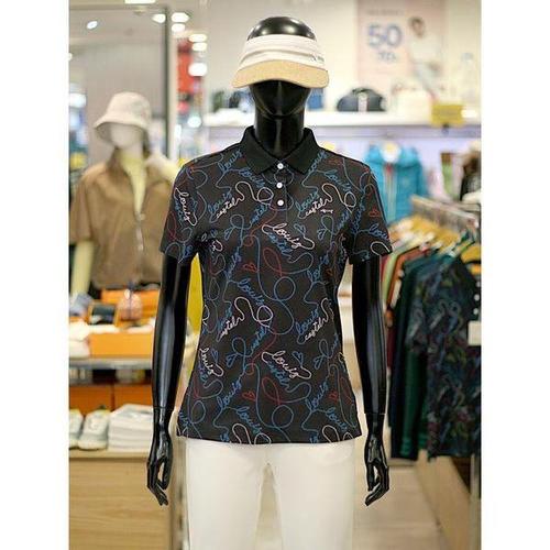 [루이까스텔]세이브존03 여성 골프 봄 여름 레터링 포인트 패턴 메쉬 반팔 카라 티셔츠 AQ7LETS434A