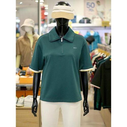 [루이까스텔]세이브존03 여성 골프 봄 여름 루즈핏 와이드 카라 반집업 반팔 티셔츠 AQ7LETS324A