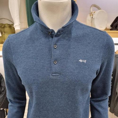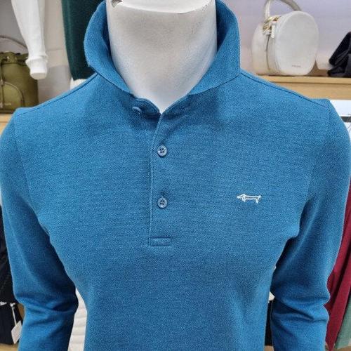 [루이까스텔]루이까스텔 남성 25FW 가을 면혼방 루카 자수 약기모 반집업 긴팔 티셔츠 (블루) 7METS912_IC
