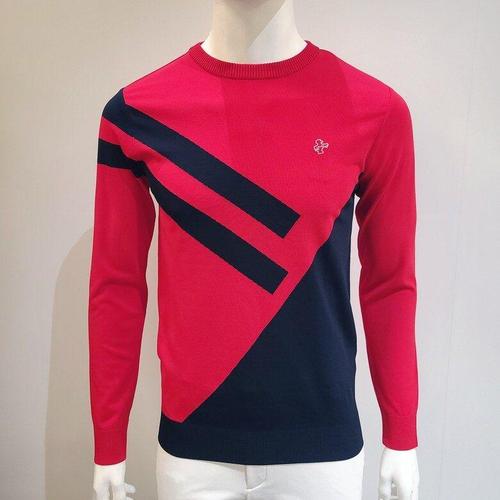 [루이까스텔]루이까스텔 남성 SS 봄 앞판 인타샤 루카 자수 라운드넥 니트 스웨터 (레드) 7GDSW301R _IC