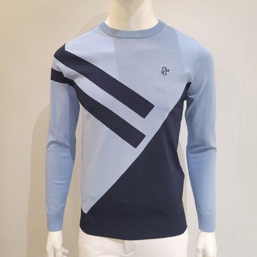 [루이까스텔]루이까스텔 남성 SS 봄 앞판 인타샤 루카 자수 라운드넥 니트 스웨터 (블루) 7GDSW301L _IC