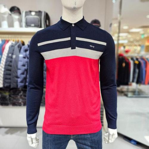 [루이까스텔]루이까스텔 남성 25SS 봄 51% 코튼 폴리 혼방 베이직 모던 카라 봄 니트 스웨터 (네이비)_IC