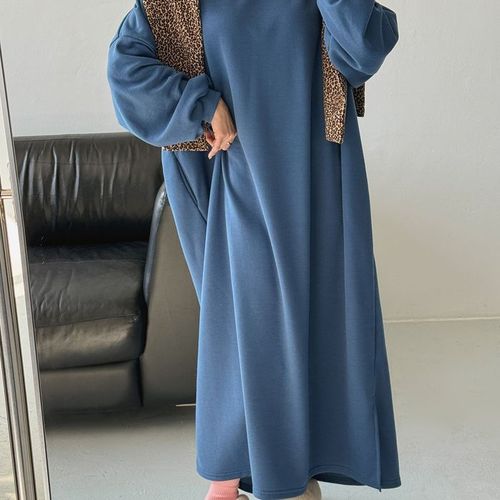 따숩 기모 루즈핏 맨투맨 롱 원피스