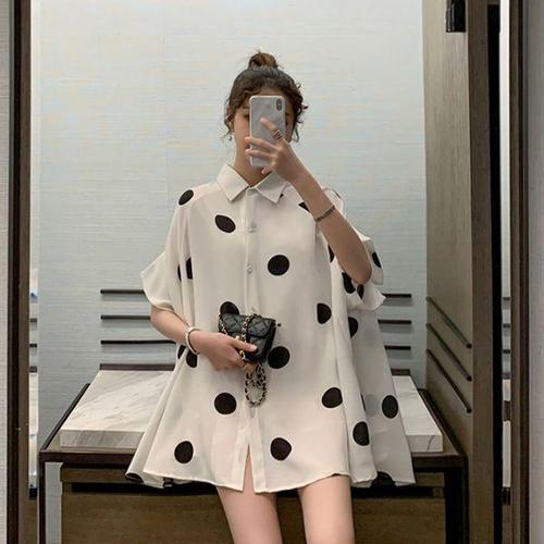 [디애이치]도트 쉬폰 블라우스 숏원피스 루즈 임산부복