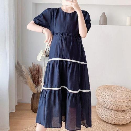 [디애이치]콜레인 화이트 라인 원피스 루즈 임산부복