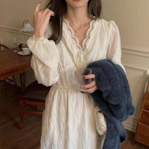 [에이치플러스몰]퓨링원피스 A라인 미니 긴팔 무지 루즈 데이트 파티