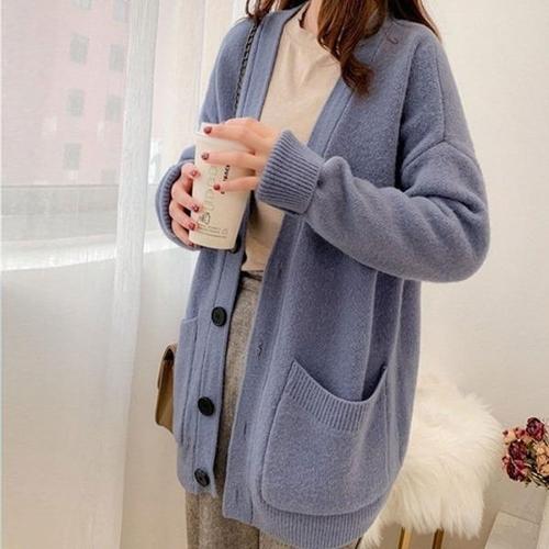 이유무무 NQ-425 여성 미디롱 스웨터 루즈핏 니트 가디건