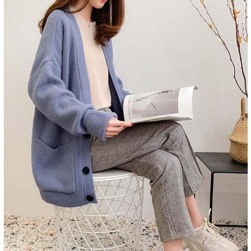 블루+그레이 가디건 숄(여성용) 여자 스타일 박시 루즈핏 패션 캐주얼