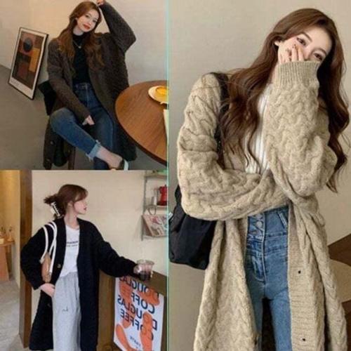 [셀럽하우스]루즈핏 VZQV5460 여성 캐주얼 따뜻한 꽈배기 필수템 롱가디건