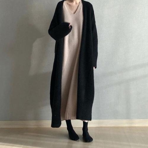 [모노위크]캐시미어 포근 브이넥 루즈핏 롱 니트원피스