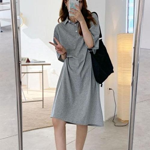 [엄지척]카라 루즈핏 기본 무지 데일리 편안한 셔츠 롱 원피스_19861208_667501