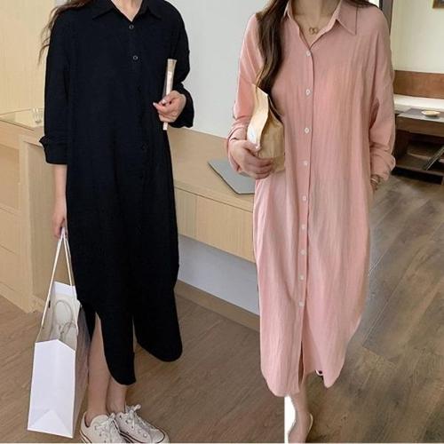 여성 여름 패션 시원한 린넨 롱 루즈핏 원피스 셔츠