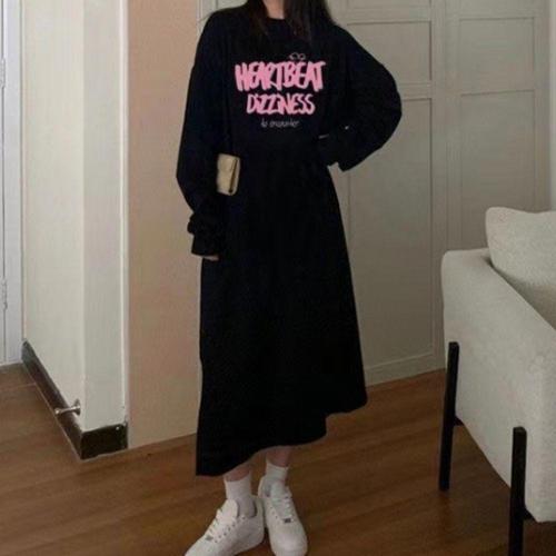 [셀럽하우스]편한 FMWR8665 데일리 기모 루즈핏 레터링 포인트 롱 원피스