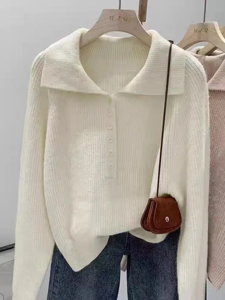 핑크 레이지 한국 스타일 빅 칼라 스웨터 여성용 가을 겨울 신상 슬림 소프트 니트 셔츠 다용도 탑 스위트 스타일 루즈핏