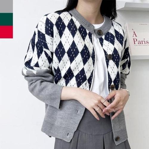 [엄지척]클래식 아가일 패턴 여자 루즈핏 니트 가디건_19791989_667501