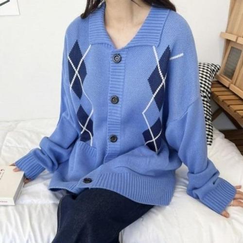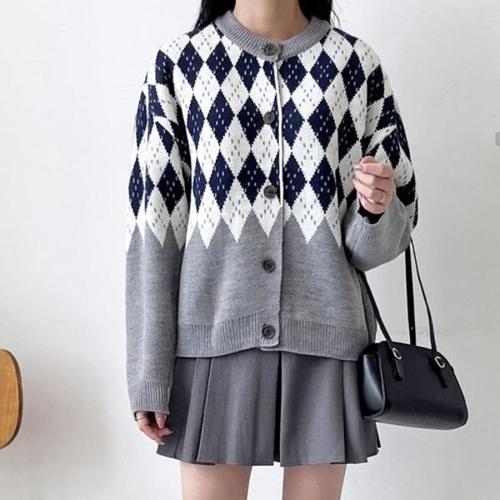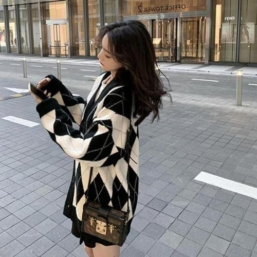 [엄지척]여성 아가일 가디건 1P 루즈핏 스웨터 데일리룩_19799399_667501