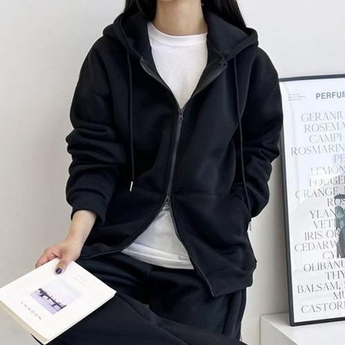 여성 2컬러 데일리 오버핏 무지 후드집업