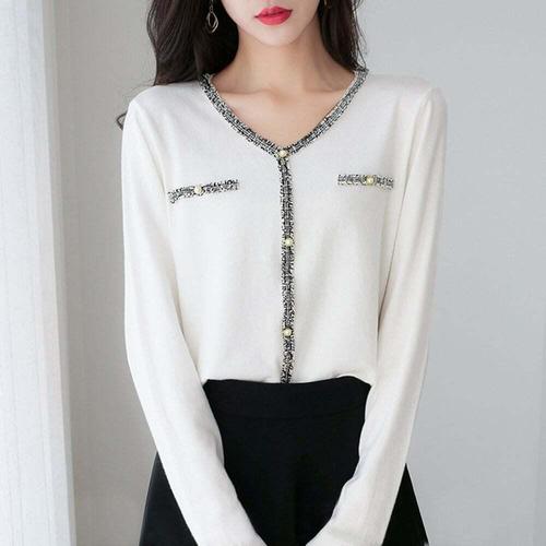 [셀럽하우스]셔츠 WUEA2230 베이직 예쁜 간절기 봄 루즈 얇은 니트 긴팔