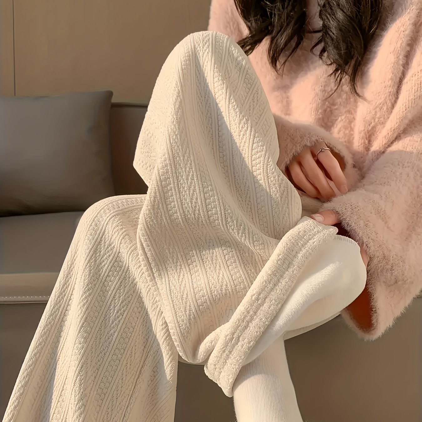 TEMU 2025년 가을/겨울 신상: 기모 안감 두꺼운 와이드 레그 팬츠, 따뜻한 롱 트라우저, 캐주얼 팬츠, 루즈핏 편안한 바지