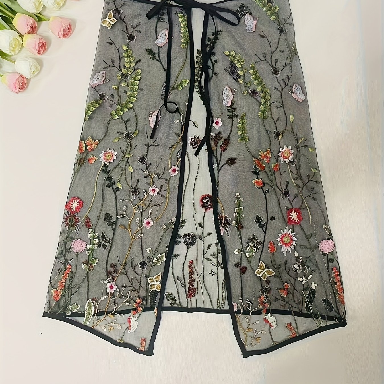 TEMU 여성용 우아한 헤비 자수 시어 드레스 | 플로럴 및 새 모티프, 루즈핏, 기하학적 패턴, 슬릿 헴 없음, 봄/여름/가을 빈티지 스타일|여름원피스