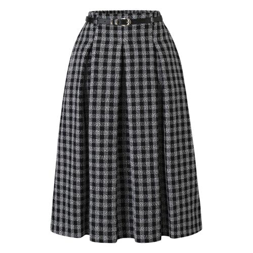 [르샵]벨티드 뒷 밴딩 체크 롱 스커트 (DP4WH006A)