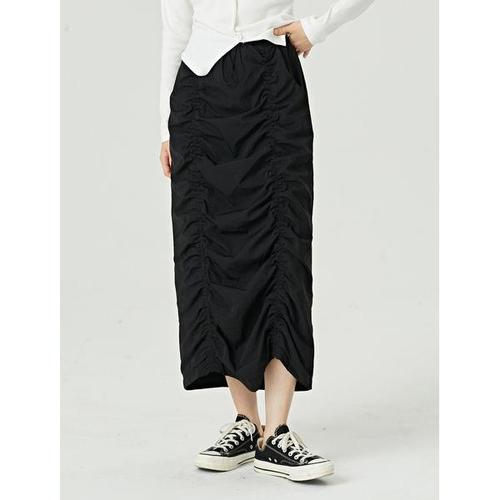 [르샵]셔링 주름 포인트 스트링 롱 스커트 (DO4WH005A)