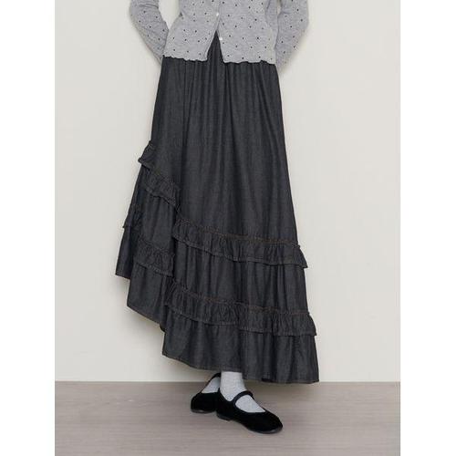 [르샵]허리 밴딩 데님 러플 티어드 스커트 (DP3WH005A)