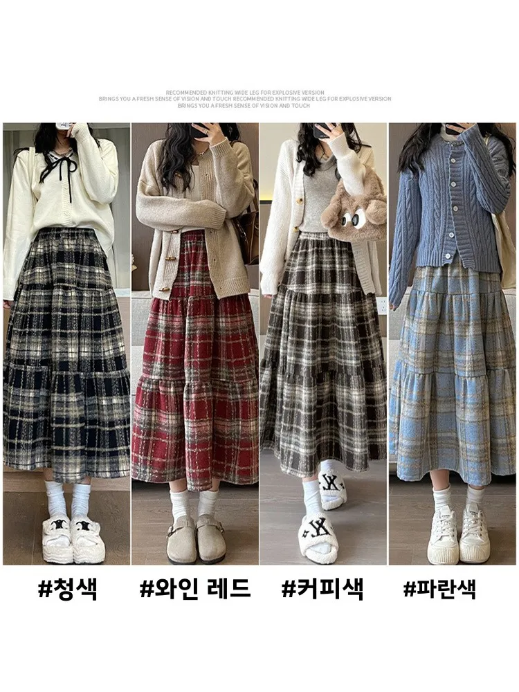 토유스 여성 발목 기장 스커트 2025 가을 신상 웨이브 스타일 레트로 그리드 A라인 언밸런스 우산 스커트