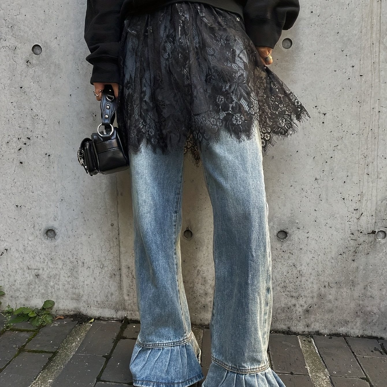 TEMU 여성 플로럴 레이스 A라인 스커트 - 러플 헴 캐주얼 여름 스커트, 가볍고 캐주얼 복장에 완벽, 캐주얼 복장 스커트 | 플로럴 레이스 스커트 | 러플 헴 스커트