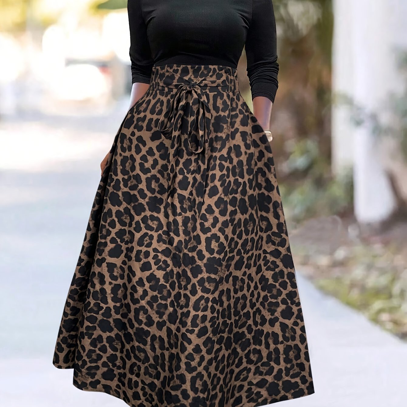 TEMU 핫한 여성 트렌디 프린트 캐주얼 허리끈 리본 우아한 다용도 커뮤터 스타일 A라인 스커트