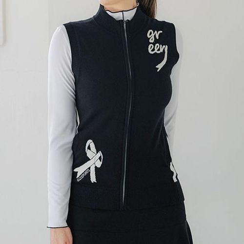 [보스케]MARIO 여성 봄 가을 골프웨어 골프 배색 리본 데일리 니트 조끼 L12402