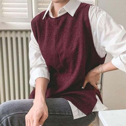 [셀럽하우스]니트 IKIP4870 절개 포인트 리본 뒷라인 옆라인 베스트 조끼