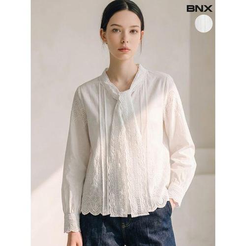 [BNX]여성 레이스 리본끈 코튼 블라우스