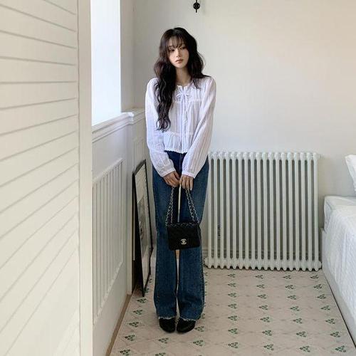 ( )블리일리 오버핏 브이넥 여리여리 레이스 허리 리본 화이트 블라우스 여름 봄 여행 데이트룩 나들이룩