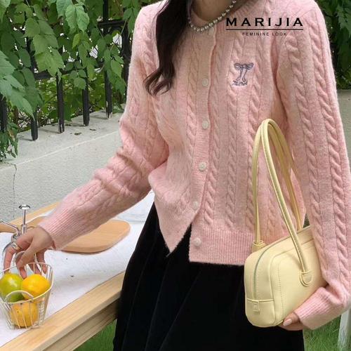 [마리지아]리본 자수 꽈베기 니트 가디건 MCAB31069
