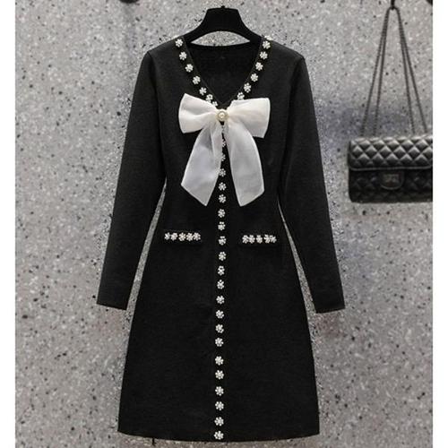 [엄지척]여성 봄 간절기 꽃진주 리본 장식 세리 니트 원피스_19871119_667501