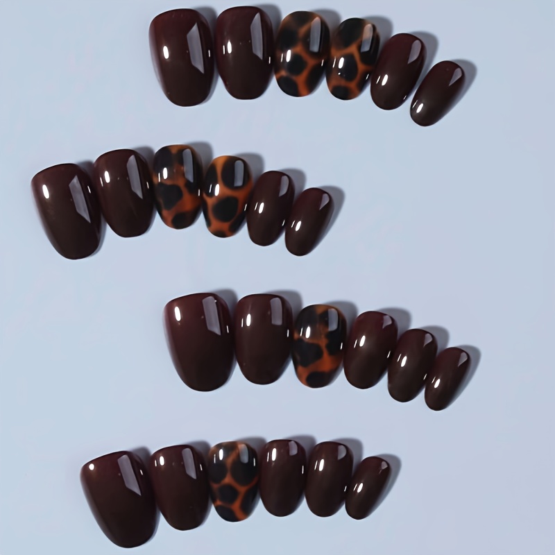 TEMU 24개입 숏 오벌 브라운 네일 디자인 프렌치 프레스온 네일, 숏 퍼펙트핏 인조네일 세트, 브라운 네일로 손끝을 빛나게 하고 아름답게, 파티, 댄스, 일상 사용에 매우 적합