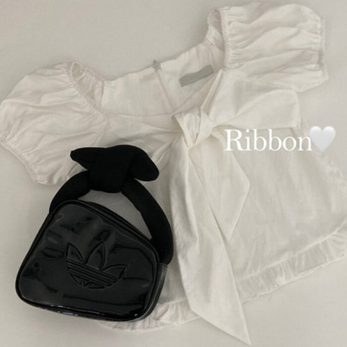 실크터치 리본타이 퍼프 블라우스 (S5SBL002A)